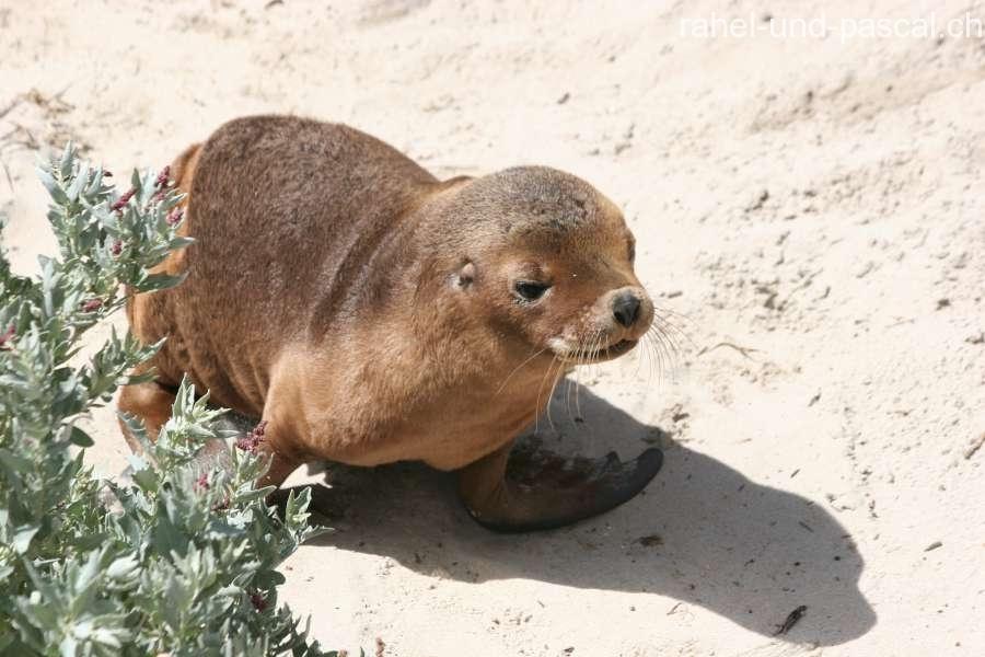 Die Fähre brachte uns von Cape Jervis nach Kangaroo Island. Die Insel steht zu einem grossen Teil unter Naturschutz. Der Osten der Insel ist vor allem wegen den wunderschönen Stränden sehr beliebt. Doch da die Temperatur trotz einigermassen schönem Wetter nicht über 20°C stieg, fuhren wir rasch weiter in Richtung Westen. Unterwegs sahen wir uns eine Kolonie von Australischen Seelöwen an, die sich an der Küste sonnten. Eigentlich erhofften wir uns, auf den Wanderungen durch den Flinders Chase Nationalpark einige Wildtiere zu entdecken, doch weit gefehlt. Die Kängurus, Wallabies und Koalas waren auf dem Campingplatz anzutreffen und der Langnasenbär sahen wir vom Auto aus. Doch schon wegen der einmaligen Landschaft lohnte sich der Besuch der Insel, besonders die Remarkble Rocks geben ein super Fotomotiv ab.